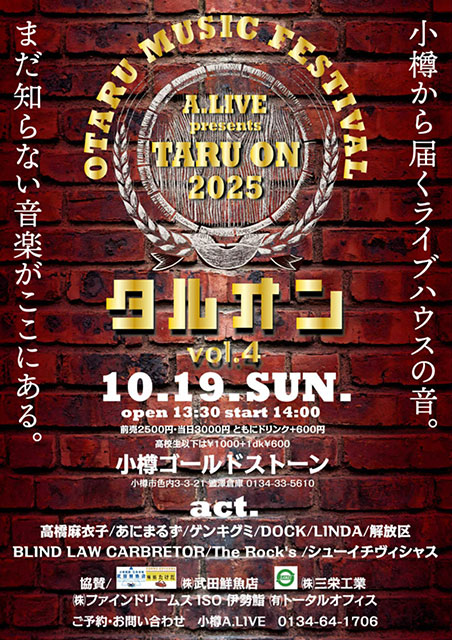 時間は公演当日「X」(@otaru_goldstone)にてご案内させていただきます |