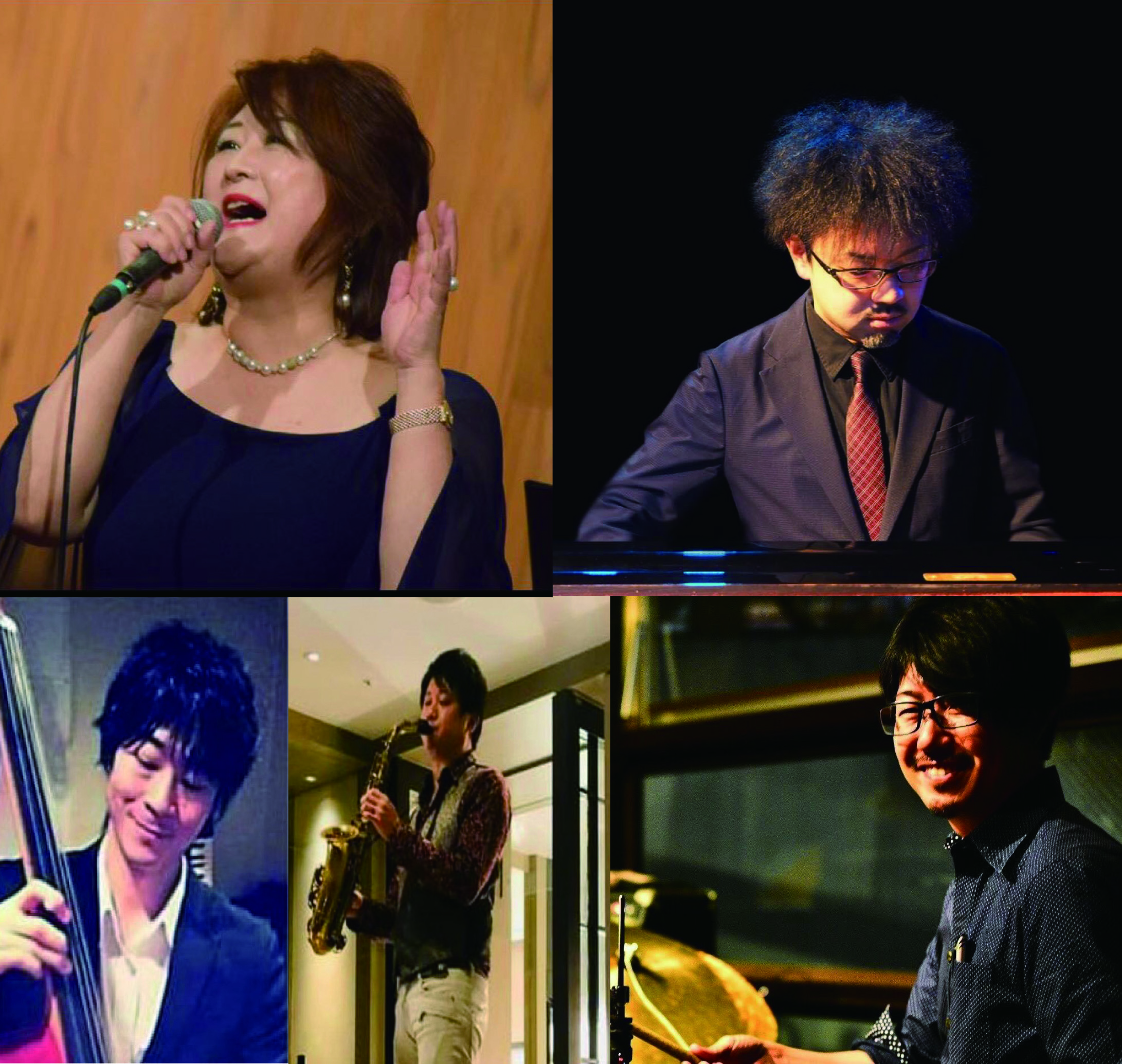mamiko grace(vo)、高島諭(pf)、MIO(ba)、川合草平(dr)、村川佳宏(sax)