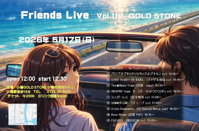 ※クローク(45L 500円)あります。時間は公演当日X(@otaru_goldstone)にてご案内させていただきます。